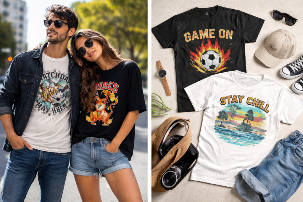 We’re an independent apparel brand focused on thoughtfully designed graphic t-shirts and essentials that blend comfort, simplicity, and expression. Every design is created to feel natural, wearable, and meaningful — whether it’s for match nights, everyday wear, or shared moments.